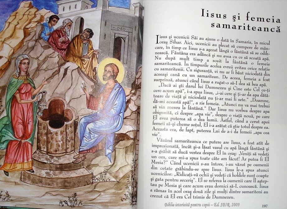 Structurare: pe capitole, Vechiul Testament si Noul Testament, fiecare capitol prezentand un eveniment din Biblie, pe intelesul copiilor.