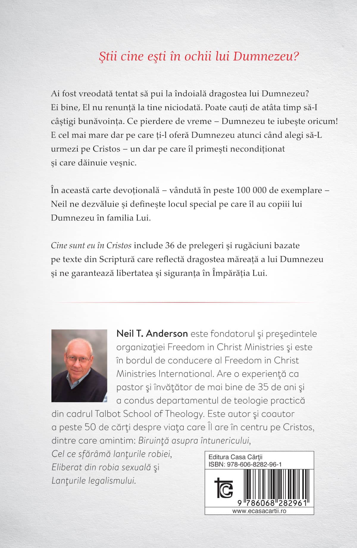 Cine sunt eu în Cristos include 36 de prelegeri si rugaciuni bazate pe texte din Scriptura care reflecta dragostea mareata a lui Dumnezeu si ne garanteaza libertatea si siguranta în Împaratia Lui.