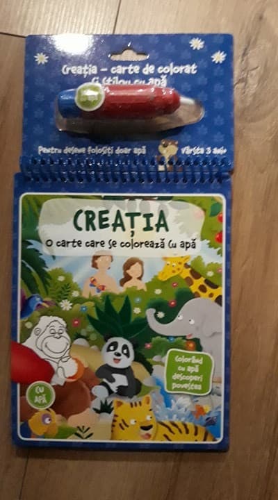 Creatia – o carte de colorat cu apa – plina de culori si activitati amuzante. Copiii vor fi uimiti pe masura ce coloreaza cu stiloul cu apa. Ei vor descoperi toate detaliile imaginilor pe masura ce vor parcurge cartea.