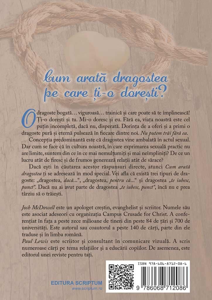 Daca esti in cautarea acestor raspunsuri directe, atunci Cum arata dragostea ti se adreseaza in mod special. Vei afla ca exista trei tipuri de dragoste: „dragostea, daca…“, „dragostea, pentru ca…“ si dragostea „te iubesc, punct“. Daca nu ai avut parte de dragostea „te iubesc, punct“, inca nu e prea tarziu sa o traiesti.