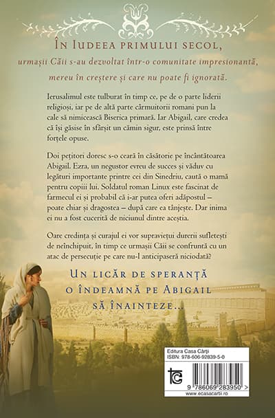 În Iudeea primului secol, urmaşii Căii s-au dezvoltat într-o comunitate impresionantă, mereu în creştere care nu poate fi ignorată.Abigail, care s-a gândit că şi-a găsit în sfârşit un cămin sigur, este prinsă între forţele opuse. Doi peţitori doresc s-o ceară în căsătorie pe încântătoarea Abigail.Ezra, un negustor evreu de succes şi văduv cu legături importante printre cei din Sinedriu caută o mamă pentru copiii lui.Soldatul roman Linux este fascinat de farmecul ei şi probabil i-ar putea oferi adăpostul – poate chiar şi dragostea – după care ea tânjeşte.Dar inima ei nu a fost cucerită de niciunul dintre aceştia.Oare credinţa şi curajul ei vor supravieţui durerii sufleteşti neţărmurite?Un licăr de speranţă o cheamă pe Abigail să înainteze…