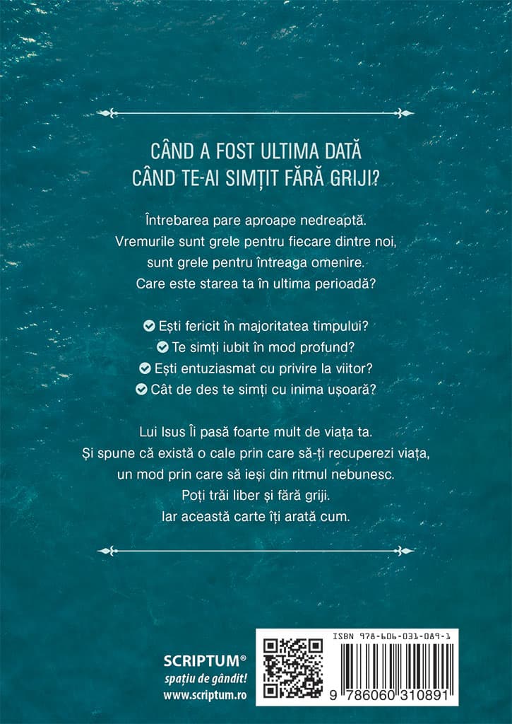 Lui Isus Ii pasa foarte mult de viata ta. Si spune ca exista o cale prin care sa-ti recuperezi viata, un mod prin care sa iesi din ritmul nebunesc. Poti trai liber si fara griji. Iar aceasta carte iti arata cum.