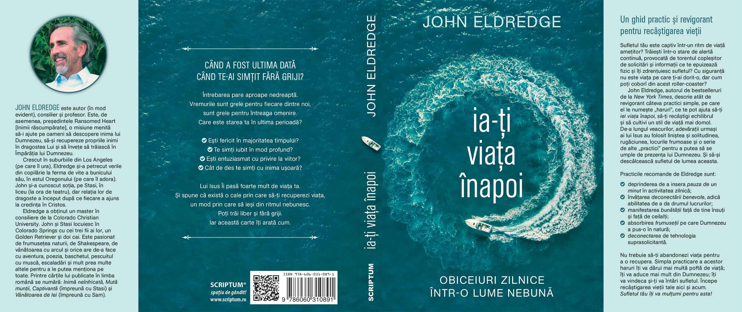 Ia-ti viata inapoi atentioneaza cu privire impactul pe care ritmul necrutator al societatii si obsesia pentru retelele sociale il poate avea asupra ta. John Eldredge insusi recunoaste: „Sufletul meu pur si simplu nu poate trai viata la viteza telefoanelor mobile. Lumea a luat-o razna de tot si incearca sa ne ia si sufletele cu ea.“ Dar viata ta poate fi innoita daca esti dispus sa accepti ajutorul lui Isus. Eldredge propune cateva practici simple: pauze de un minut, scaldarea in frumusetea miraculoasa a naturii, deconectarea de la tehnologie, practicarea bunavointei fata de ceilalti si de sine – si arata cum poti sa implementezi aceste obiceiuri in programul tau zilnic. Experimentarea sentimentelor, chiar si a celor inconfortabile, si stabilirea unor criterii de referinta sanatoase sunt practici atat de necesare pentru a preveni caderea „in ritmul nebunesc al acestei lumi“. Pe masura ce sufletul tau este vindecat si restaurat, se va potrivi din ce in ce mai putin in nebunia acestor vremuri si singura salvare viabila care sa-ti incetineasca ritmul vietii pentru a-ti duce la indeplinire menirea este „mai mult din Dumnezeu“. Pentru ca indiferent cat am gustat din Dumnezeu, vom afla cu surprindere ca avem nevoie din nou de El si maine.