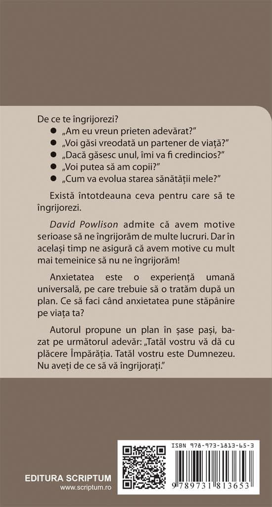 David Powlison admite ca avem motive serioase sa ne ingrijoram de multe lucruri. Dar in acelasi timp ne asigura ca avem motive cu mult mai temeinice sa nu ne ingrijoram!