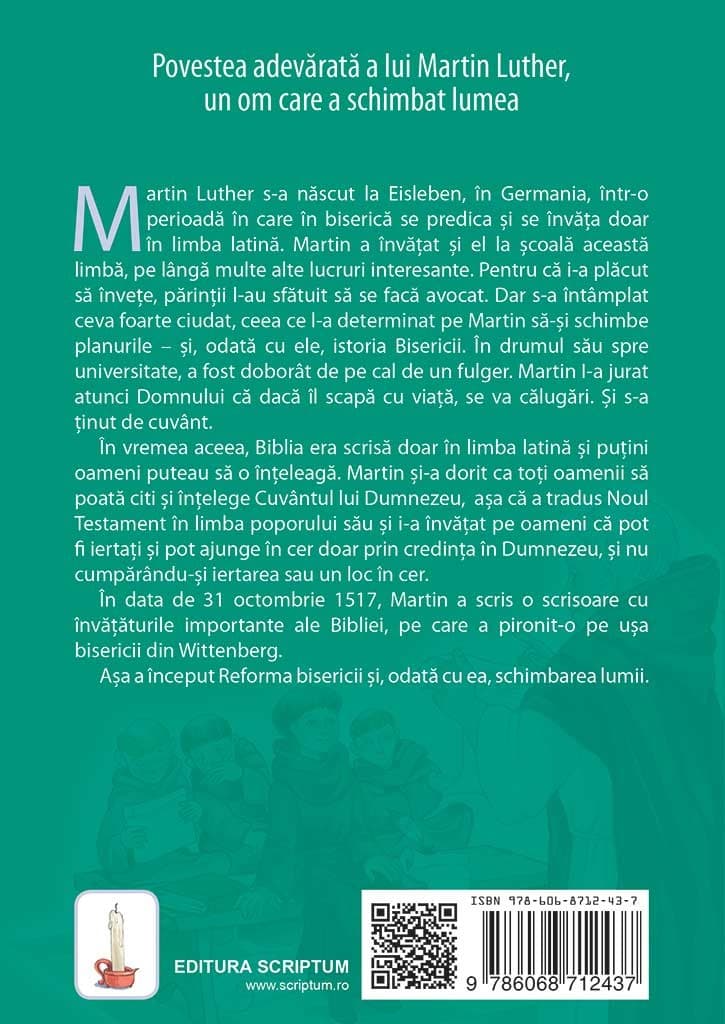 In vremea aceea, Biblia era scrisa doar in limba latina si putini oameni puteau sa o inteleaga. Martin si-a dorit ca toti oamenii sa poata citi si intelege Cuvantul lui Dumnezeu, asa ca a tradus Noul Testament in limba poporului sau si i-a invatat pe oameni ca pot fi iertati si pot ajunge in cer doar prin credinta in Dumnezeu, si nu cumparandu-si iertarea sau un loc in cer.