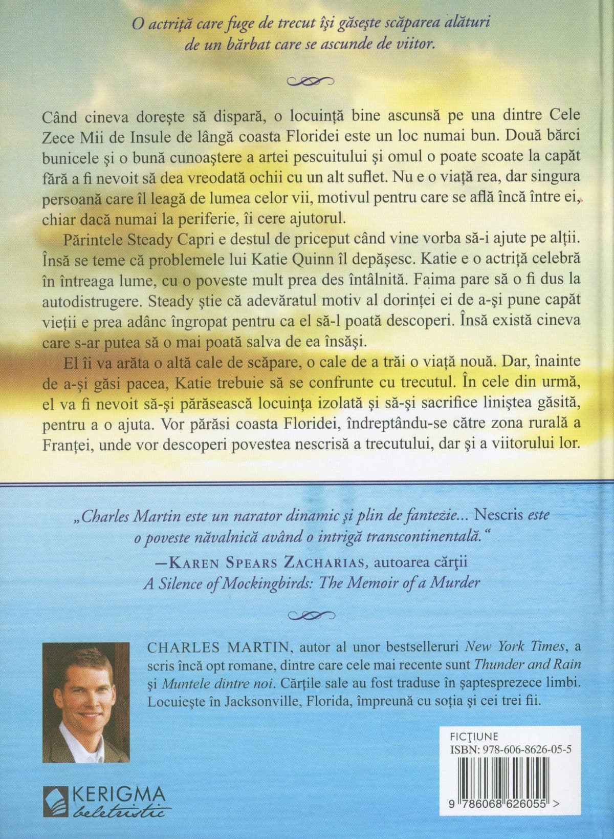 ‘Un roman fascinant… Charles Martin a luat firele povestii sale si mi le-a infasurat in jurul inimii. Personajele sale de neuitat, care se confrunta cu trecutul ascuns si isi cladesc viitorul cu credinta, prietenie si har, te captiveaza.’ — Elin Hildebrand, autoarea romanului ‘Beautiful Day’