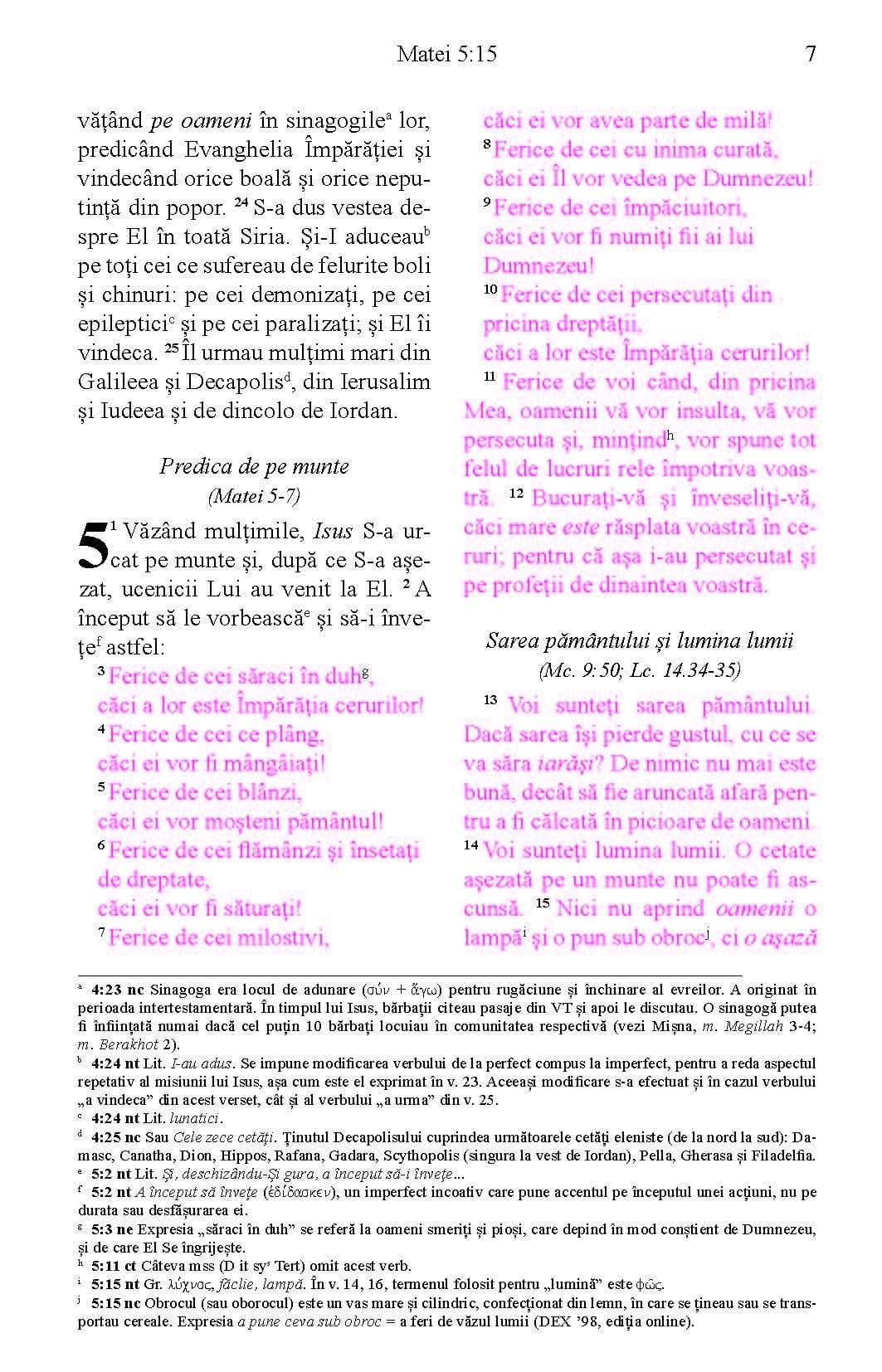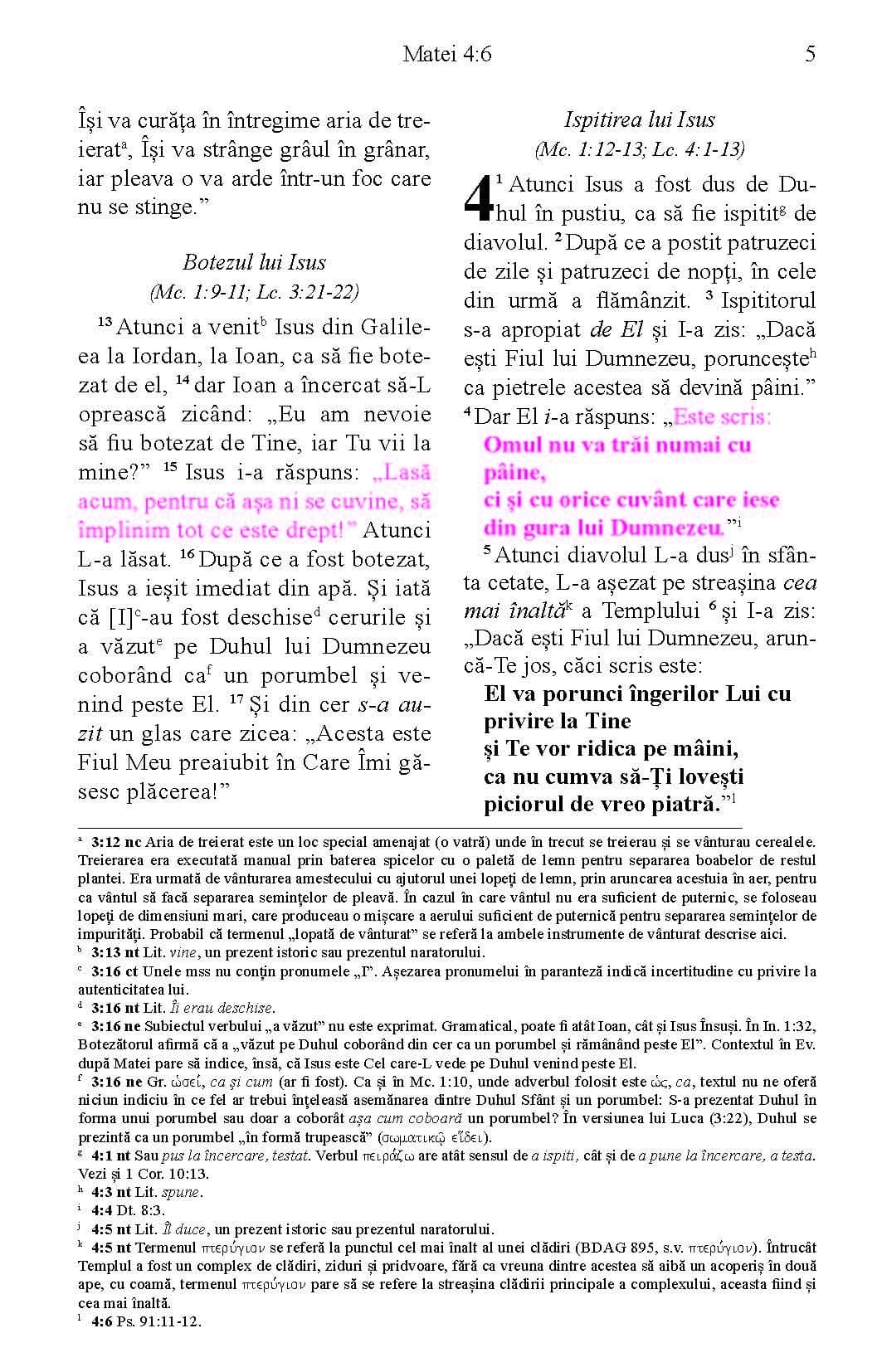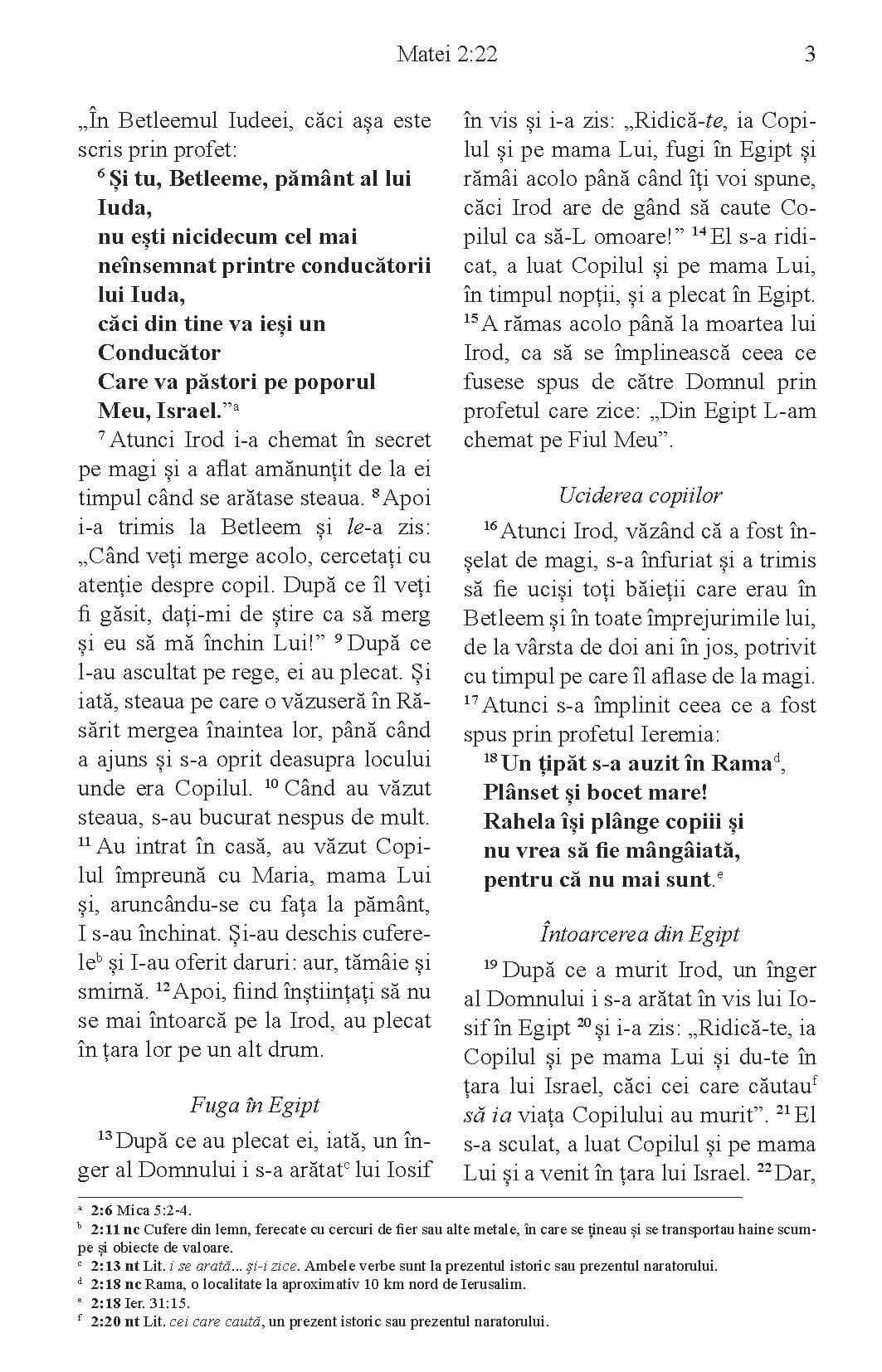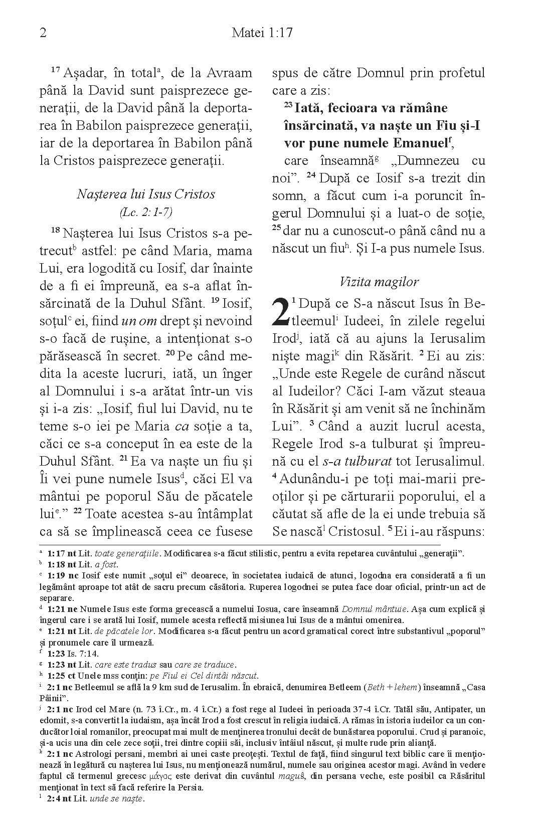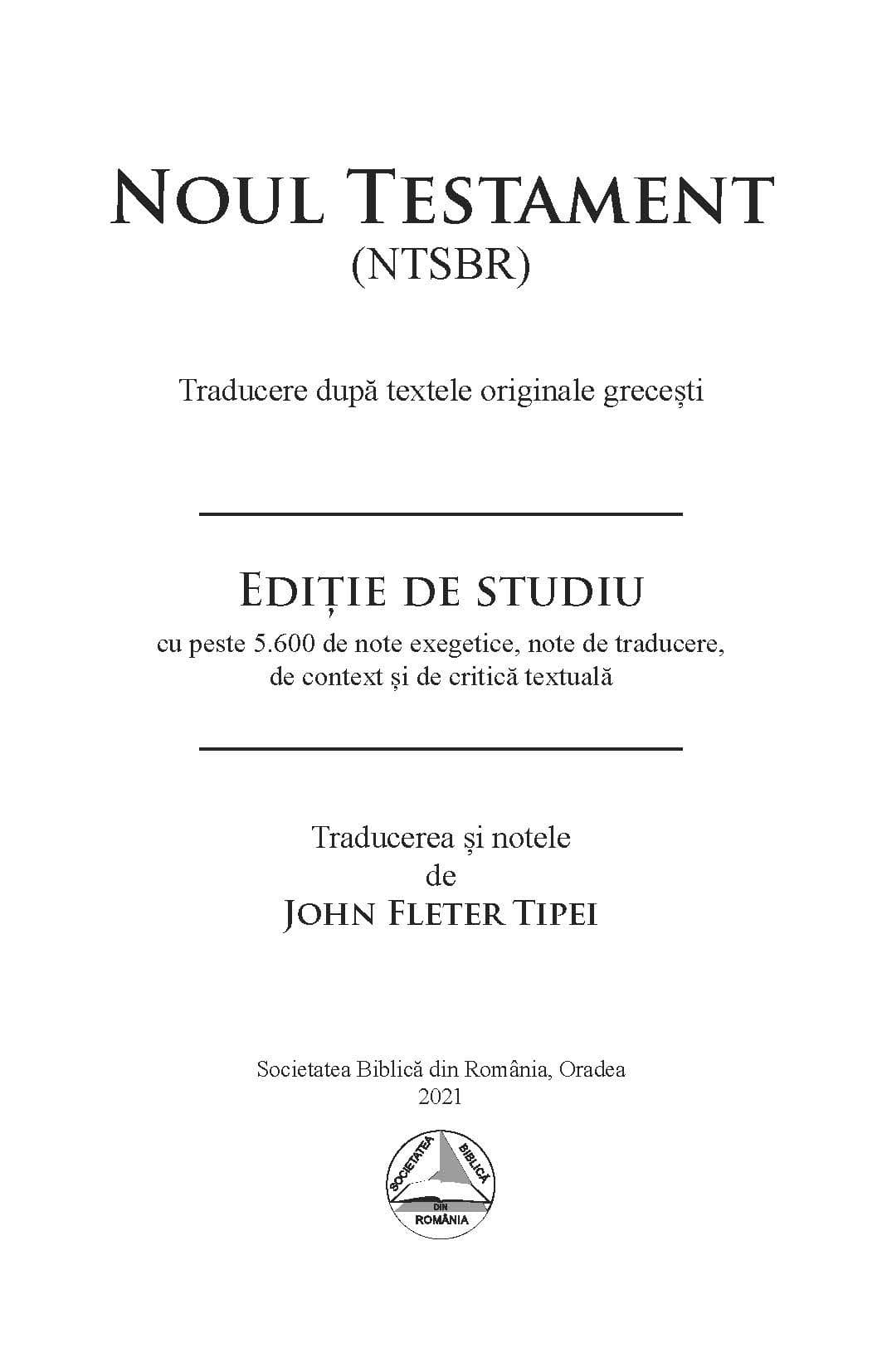 Speranța noastră este că această traducere nu va fi doar o lectură plăcută pentru cei care se apleacă asupra ei, ci că, în ea, aceștia vor găsi cuvintele vii ale lui Dumnezeu, care le vor schimba viața. De asemenea, nădăjduim ca această ediție de studiu, prin cele peste 5.600 de note de subsol, să fie o unealtă utilă în mâna studenților, cercetătorilor Sfintei Scripturi și a slujitorilor care doresc să aprofundeze înțelesul unor termeni din originalul grecesc, să înțeleagă contextul istoric, geografic și cultural-religios al unor evenimente și să se familiarizeze cu variantele de text care apar în manuscrise.