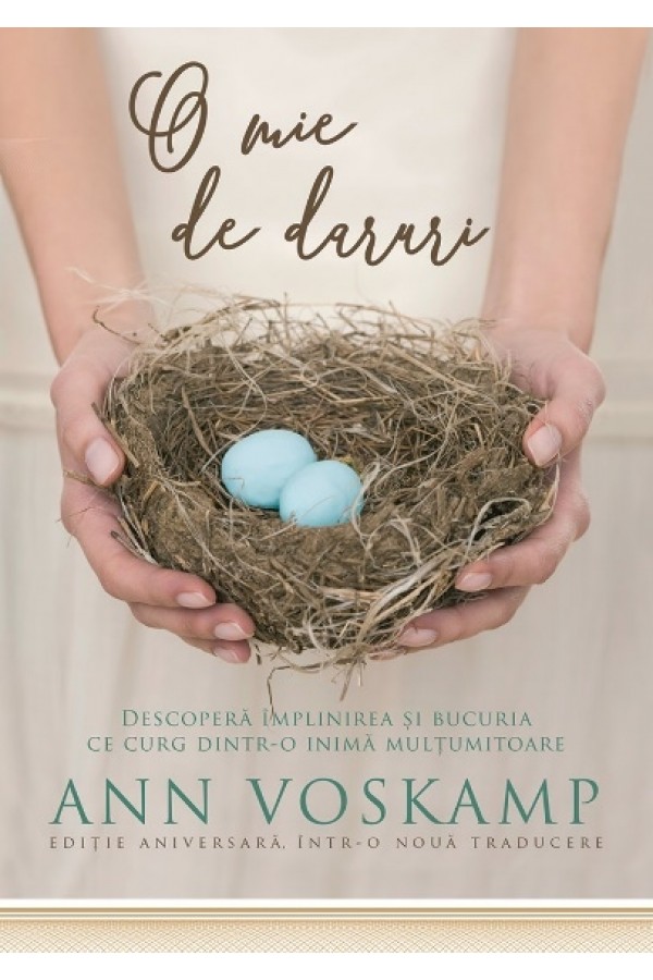 Captivanta, tulburatoare si plina de poezie, O mie de daruri iti lanseaza provocarea sa deschizi bine ochii ca sa vezi binecuvantarile lui Dumnezeu in fiecare zi si sa te abandonezi in bratul Lui care-ti umple paharul de da peste el. Dezvaluind clipe din viata ei in care a cunoscut ce inseamna harul, Ann te ajuta sa redescoperi adevaruri simple ce te vor inspira sa te opresti din alergare pentru a-L vedea pe Dumnezeu si sa cauti harul Lui in toate imprejurarile vietii.
