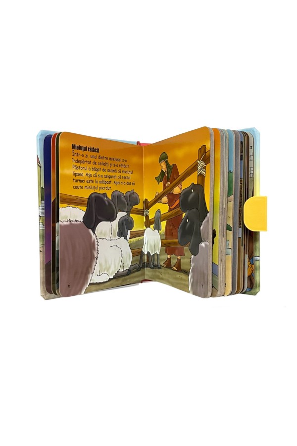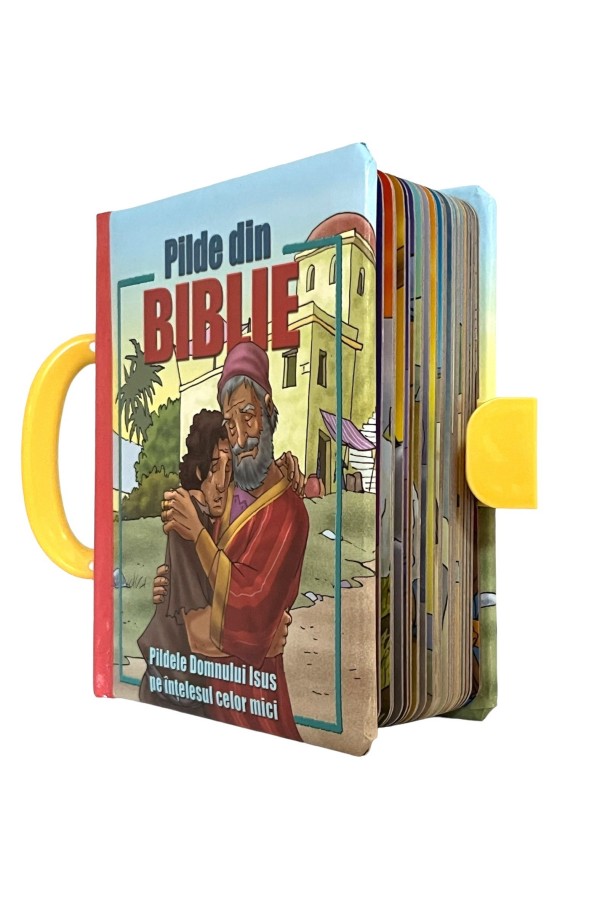Mânerul cărțuliei îi va încânta pe cei mici și le va fi astfel ușor să ia peste tot cu ei comoara de plide biblice.