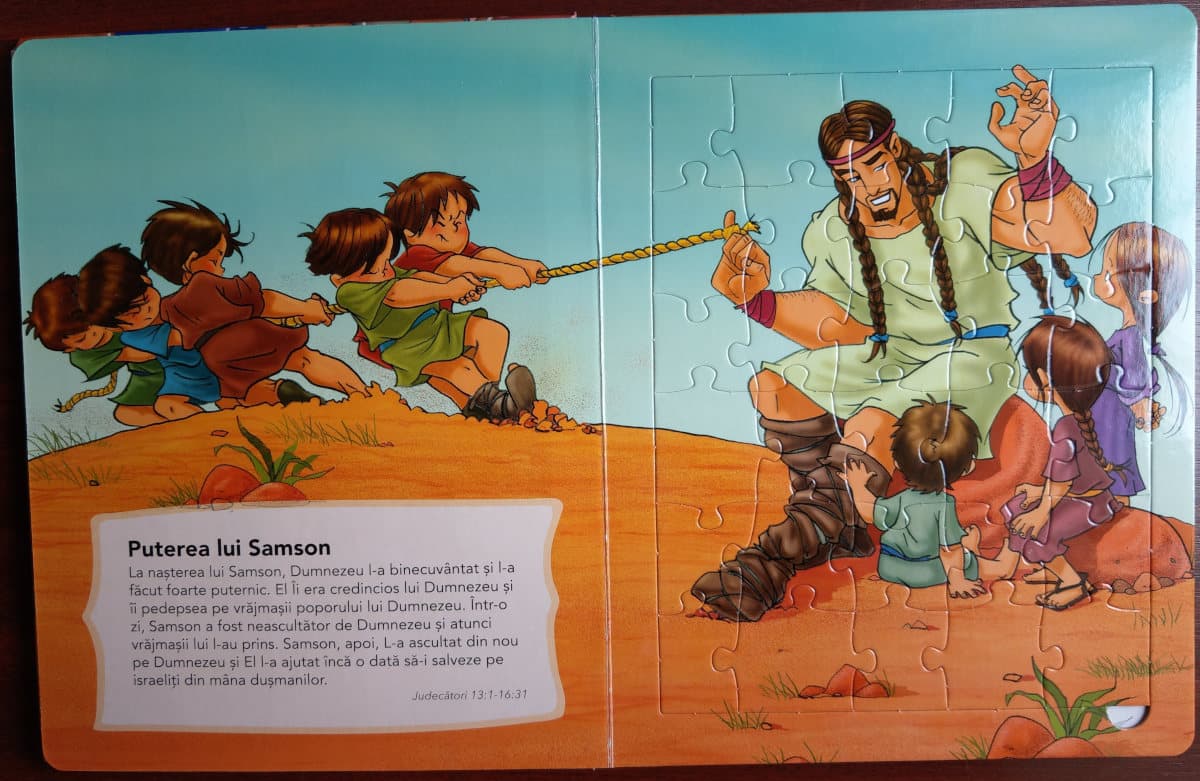 Copiii asimileaza invatatura biblica ascultand povestioarele si totodata isi dezvolta abilitati precum coordonarea mana-ochi si dexteritatea, rezolvand puzzle-urile ilustrate si colorate intr-un mod atractiv.