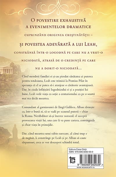 O povestire exhaustivă a evenimentelor dramatice cuprinzând originea creştinătăţii – şi povestea adevărată a lui Leah, constrânsă într-o logodnă pe care nu a vrut-o niciodată, atrasă de o credinţă pe care nu a dorit-o niciodată… Când membrii familiei ei şi-au pierdut sănătatea şi puterea pentru totdeauna, Leah este trimisă la Pontius Pilat în speranţa că el ar putea să-i aranjeze o căsătorie avantajoasă. Dar, în ciuda înfăţişării logodnicului ei şi a poziţiei lui bune, Leah vede viaţa ca soţie a centurionului ca pe o soartă mai rea decât moartea. Comandant al garnizoanei de lângă Galileea, Alban râvneşte ca, într-o bună zi, să se vadă pe scaunul puterii – chiar la Roma. Nerăbdător să-şi încerce norocul, el acceptă provocarea vieţii lui, una care îi va pune cariera, convingerile şi chiar viaţa în primejdie.
