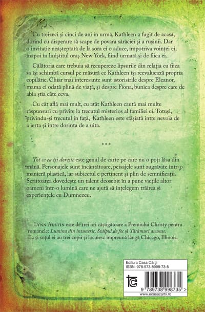 Un roman extraordinar despre dragoste, iertare, suferinţă şi importanţa rezistenţei în faţa tentaţiei de a fugi când lucrurile devin dificile. Poveştile femeilor din acest roman scot în evidenţă nevoia de a ne încrede în Dumnezeu pe tot parcursul vieţii.