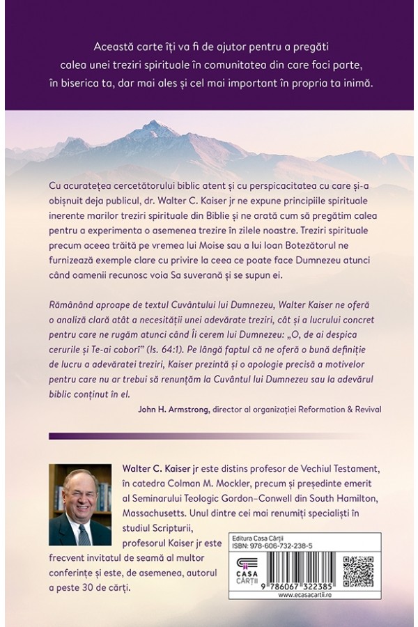 Rămânând aproape de textul Cuvântului lui Dumnezeu, Walter Kaiser ne oferă o analiză clară atât a necesității unei adevărate treziri, cât și a lucrului concret pentru care ne rugăm atunci când Îi cerem lui Dumnezeu: „O, de ai despica cerurile și Te-ai coborî” (Is. 64:1). Pe lângă faptul că ne oferă o bună definiție de lucru a adevăratei treziri, Kaiser prezintă și o apologie precisă a motivelor pentru care nu ar trebui să renunțăm la Cuvântul lui Dumnezeu sau la adevărul biblic conținut în el.