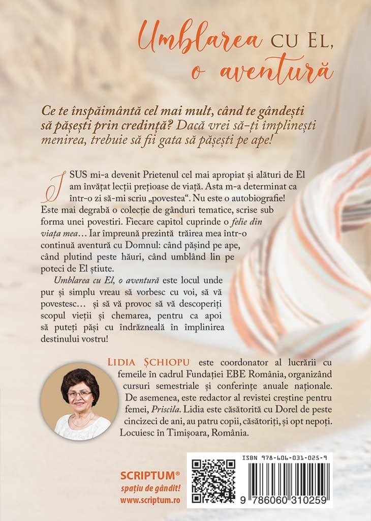 ISUS mi-a devenit Prietenul cel mai apropiat si alaturi de El am invatat lectii pretioase de viata. Asta m-a determinat ca intr-o zi sa-mi scriu „povestea“. Nu este o autobiografie! Este mai degraba o colectie de ganduri tematice, scrise sub forma unei povestiri. Fiecare capitol cuprinde o felie din viata mea… Iar impreuna prezinta trairea mea intr-o continua aventura cu Domnul: cand pasind pe ape, cand plutind peste hauri, cand umbland lin pe poteci de El stiute.